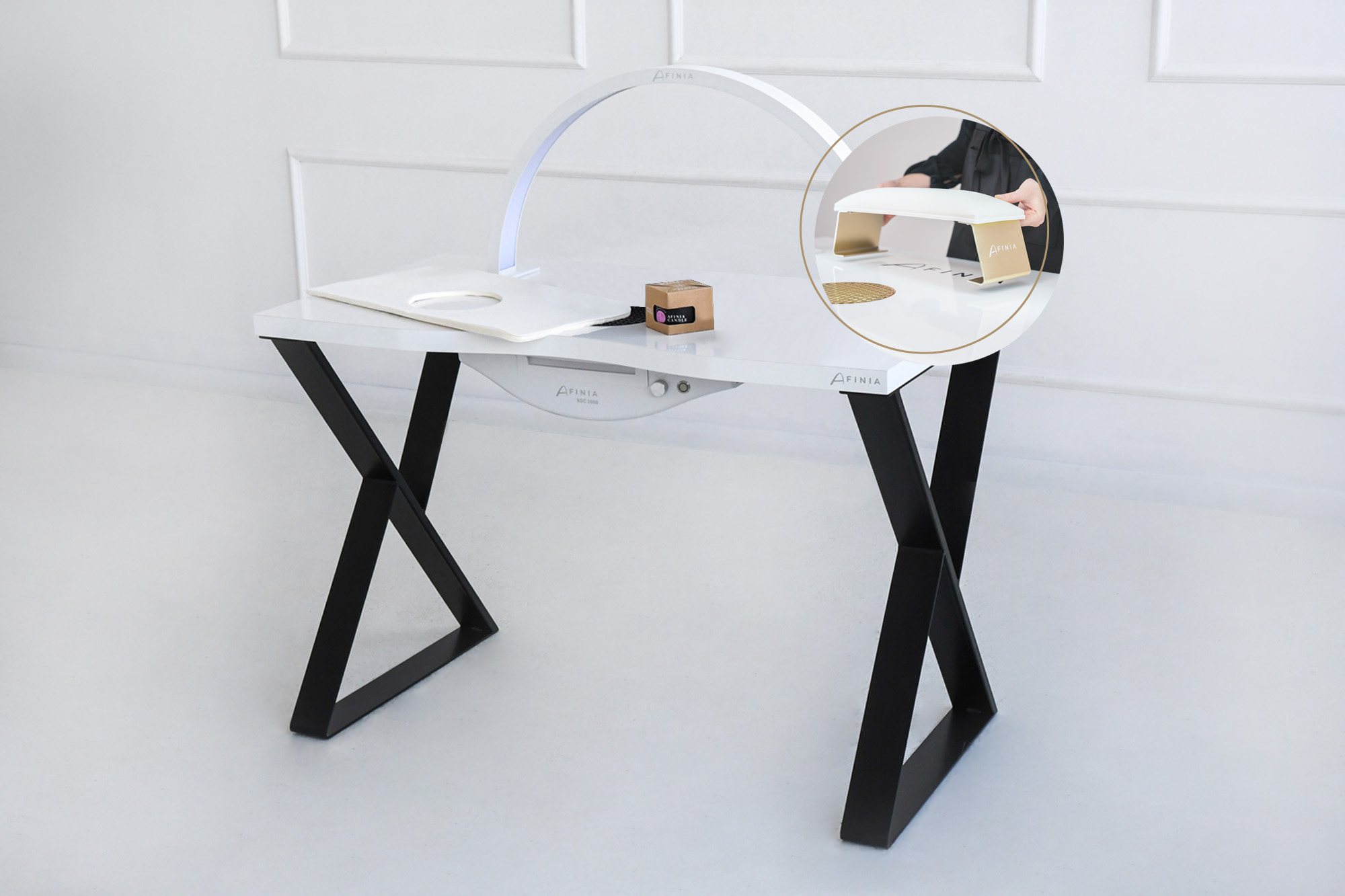 Stilvolle und funktionale Handauflage, die für den Komfort der Stylistin und der Kundin entwickelt wurde. Dank ihrer ergonomischen Konstruktion bietet sie eine bequeme Handstütze und erleichtert die Nagelmodellage. Hergestellt aus langlebigen Materialien, die beständig gegen Aceton, hohe Temperaturen und Verschmutzungen sind – für eine lange Lebensdauer und einfache Reinigung. Erhältlich in eleganten Farben: Weiß und Schwarz.
