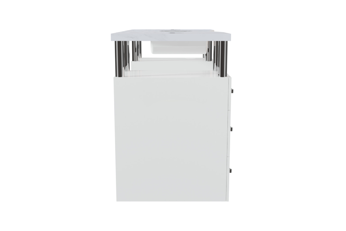 Der Kosmetiktisch Afinia Basic aus Sinterquarz ist eine funktionale und ästhetische Lösung für kosmetische Räume. Das einfache und universelle Design ist mit reichlich Stauraum in Form von 5 Schubladen ausgestattet. Die Arbeitsplatte aus Sinterquarz garantiert unvergleichliche Haltbarkeit und Stärke, die die Eigenschaften von Granit weit übertreffen. Sinterquarz zeichnet sich durch eine hohe Beständigkeit gegen mechanische Beschädigungen aus, was ihn extrem schwer dauerhaft zu beschädigen macht. Dies macht den Afinia Basic Kosmetiktisch nicht nur schön, sondern auch zu einer zuverlässigen Lösung für jeden Schönheitssalon.